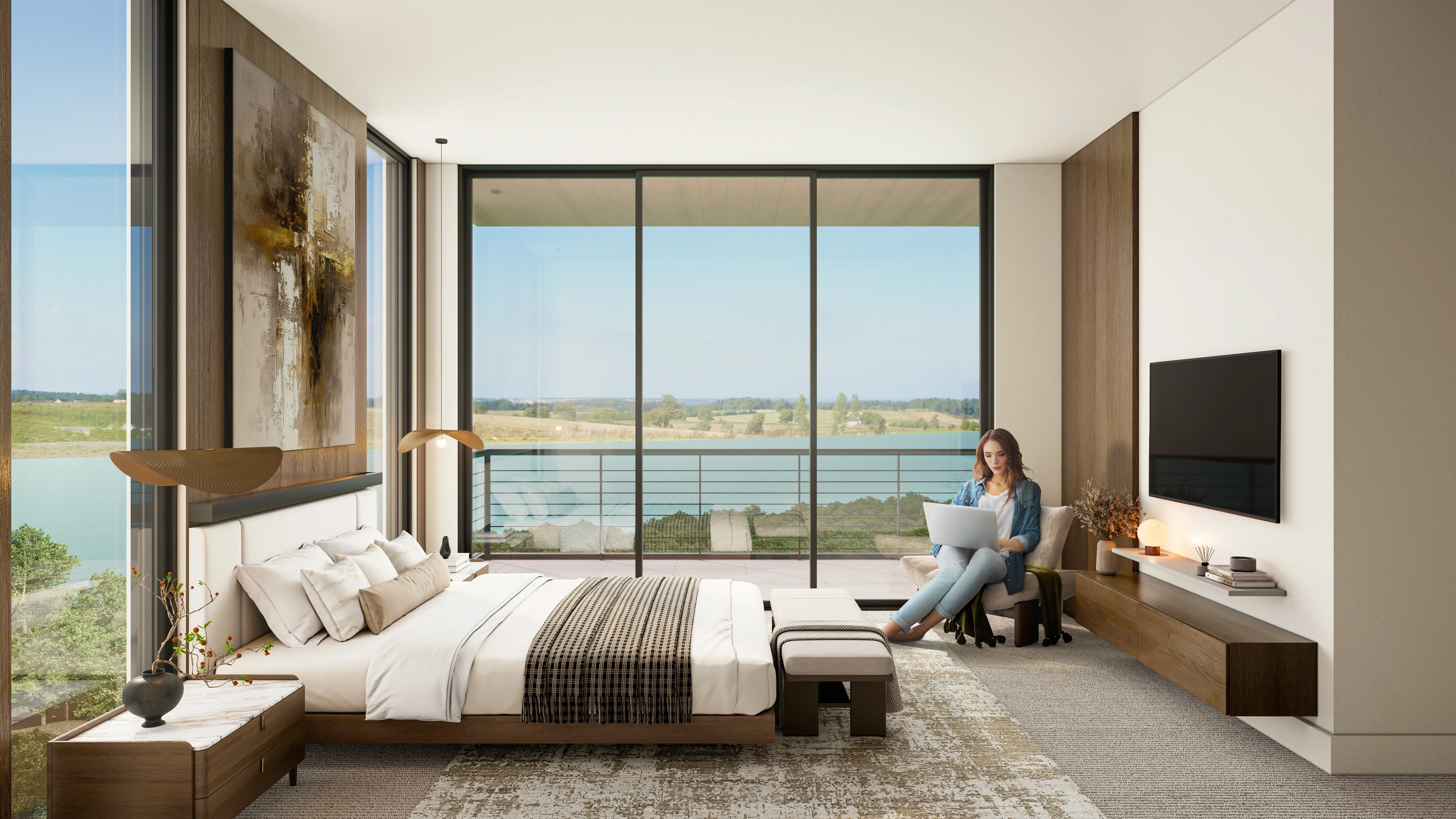 Shores at Riviera offers 34 boutique condos perched on a scenic Lake Travis peninsula. Thoughtful layouts, expansive balconies, and roof terraces bring residents closer to nature, creating a relaxed, chic lifestyle with endless water views, abundant natural light, and spaces for both quiet reflection and joyful outdoor enjoyment.