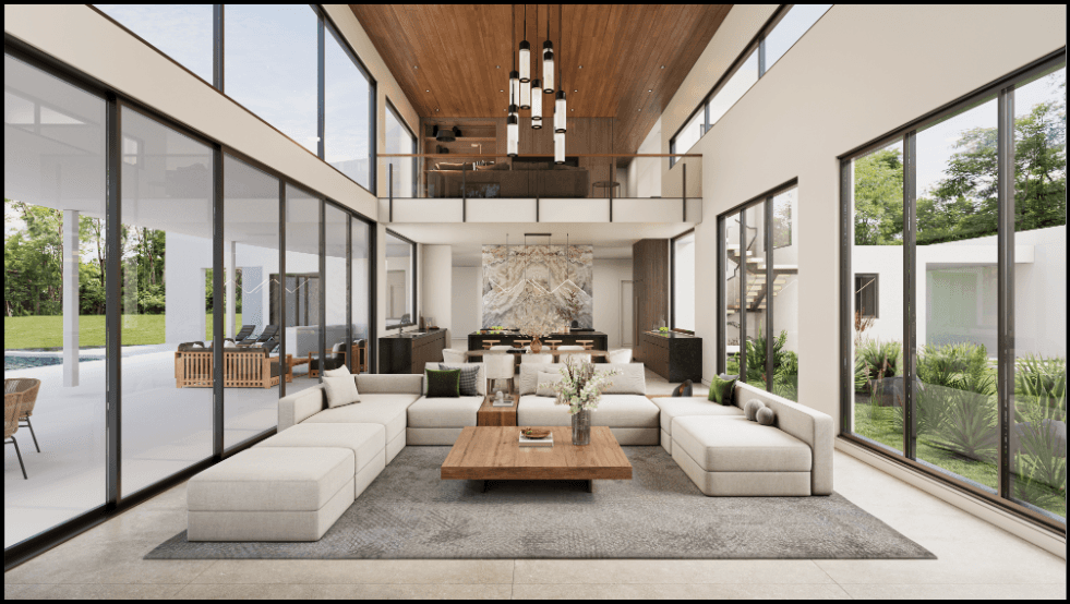 Layout for Living, Dining & Kitchen with uninterrupted views